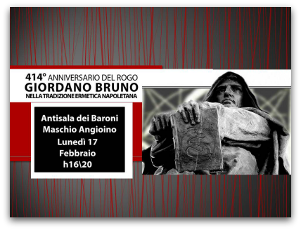 Monday, February 17th, 2014 from 4.00pm to 8.00pm in the "Antisala dei Baroni" at Maschio Angioino, the conference "Giordano Bruno in the hermetic Neapolitan Tradition" will take place.