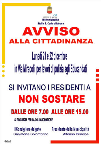lunedì 21 dicembre inizierà la pulizia straordinaria del cortile dell'Ex Educandato Statale in Piazza Miracoli