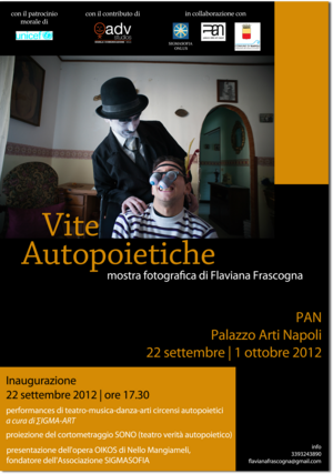 Il progetto fotografico Vite Autopoietiche racconta di persone con disabilità fisiche, psichiche, con problemi di disagio e inclusione sociale che, attraverso un percorso formativo autopoietico, sono riusciti a raggiungere forme di autorealizzazione e autoguarigione estremamente significative.