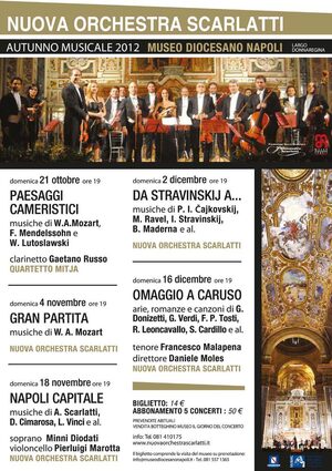 Come già avviene da alcuni anni torna la Stagione concertistica "Autunno Musicale 2012" con la Nuova Orchestra Scarlatti.