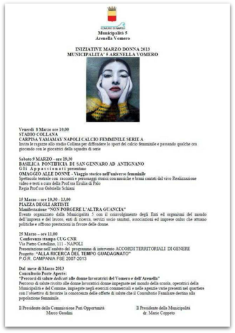 La Municipalità 5, nell'ambito delle Iniziative previste dal Comune di Napoli per Marzo Donna, ha organizzato la Manifestazione "NON PORGERE L'ALTRA GUANCIA"