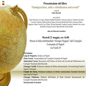 La presentazione di Immigrazione, asilo e cittadinanza universale prosegue i Percorsi di democrazia - Partecipazione e beni comuni, ciclo di incontri organizzato dalla Vicepresidenza del Consiglio comunale di Napoli per discutere di democrazia, in una fase critica della sua storia, a partire da alcuni testi che in tempi recenti si sono interrogati sulle forme e i destini del "governo del popolo".