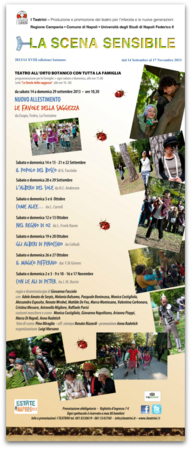 Si inizia sabato 14 settembre 2013, alle ore 10.30 (repliche fino a domenica 29) con Le favole della saggezza per la drammaturgia e regia di Giovanna Facciolo, con Adele Amato de Serpis e Melania Balsamo, musiche eseguite dal vivo da Pasquale Benincasa, maschere e oggetti di scena di Marco Di Napoli.