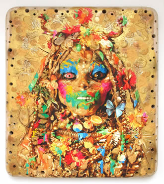 Ashley Bickerton presenta una scultura e due grandi pannelli di legno dipinto, personale tentativo di fondere perfettamente pittura, fotografia e scultura in una stessa opera e di porsi in una originale relazione con quanto di più fantastico può rintracciarsi nella mitologia greca.