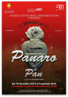 Nell'ambito della manifestazione NATALE A NAPOLI ... PERCORSI DI LUCE 2013, rassegna curata da Tiziana Gelsomino e Donatella Liguori dedicata quest'anno alla green economy, l'arte di Rosa Panaro - che usa materiali di riciclo e ripercorre simboli apotropaici vecchi e nuovi - rappresenta un dono speciale alla città: in tempi di bilanci di fine anno e di difficoltà economiche, una mostra tutta giocata su elementi beneauguranti, dalle salamandre ai melograni passando per le ali protettive degli angeli e la tradizione del presepe (rivisitato in versione contemporanea, dove i burka affiancano i veli delle madonne), rappresenta un modo per affidare all'arte un messaggio di rinascita e di speranza.
