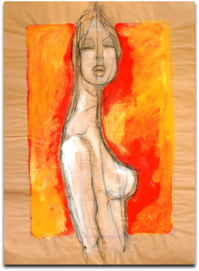 La ricerca di Savarese è sintesi personale e mai retorica di fonti e memorie passate. La maniera michelangiolesca del 'non finito' come precisa scelta, come se la bozza appena accennata della figura suggerisse la tensione e l'inquietudine insita nella donna. Il disegno secco, incisivo e tagliente rimanda a Schiele.