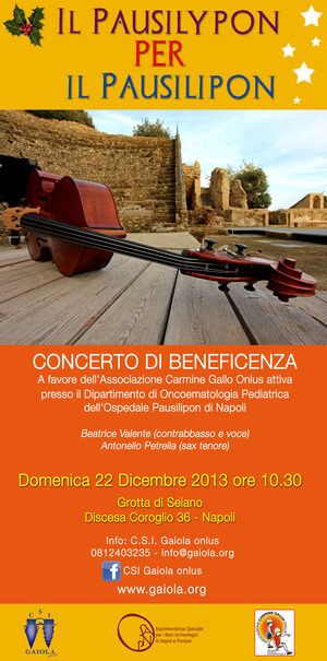 In occasione del Natale 2013 il Centro Studi Interdisciplinari Gaiola onlus, ha quindi organizzato, d'intesa con la Soprintendenza Speciale per i Beni Archeologici di Napoli e Pompei, nello splendido scenario del Parco Archeologico Ambientale del Pausilypon, un concerto di beneficenza al fine di raccogliere fondi per l'Associazione Carmine Gallo onlus attiva presso il Dipartimento di Oncoematologia Pediatrica dell'Ospedale Pausilipon di Napoli.
