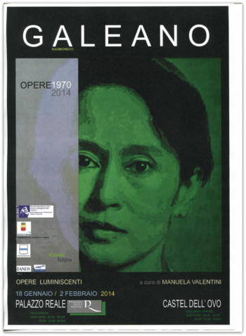 A Palazzo Reale viene proposta una carrellata di opere che, ripercorrendo la carriera dell'artista, dimostrano la volontà del pittore bolognese di sperimentare gli effetti dell'interazione del lumen - questo il nome del materiale luminoso usato da Galeano - con altri materiali. Il percorso della mostra comincia proprio con delle sperimentazioni di luce che incontrano perlopiù tematiche di carattere scientifico (Galassie) o soggetti primordiali sospesi tra mondi terrestri ed extraterrestri, ma in ogni caso sempre da decifrare (Epossidici). In questa fase giovanile è possibile rintracciare frequenti incursioni nel modo di concepire l'arte della Scuola Romana e residui di colore, perché, come afferma Galeano "per un pittore è difficile staccarsi dal colore dal giorno alla notte". A Castel dell'Ovo Galeano fa rivivere l'antica leggenda di Virgilio, secondo la quale un uovo sarebbe stato nascosto dal poeta latino nelle segrete dell'edificio in epoche remote. Con L'enigma di Virgilio - un'installazione alta quasi tre metri - Galeano si è calato nelle vesti di un mago e ha creato un enorme uovo di luce che intende regalare ai napoletani l'opportunità di osservare con i propri occhi qualcosa di cui hanno sempre e solo sentito parlare oralmente e svelarne il mistero.