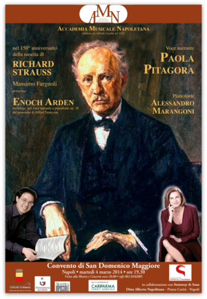 Nel 150° anniversario della nascita del compositore tedesco Richard Strauss, Massimo Fargnoli presenta "Enoch Arden", melologo per voce narrante e pianoforte con la partecipazione dell'attrice Paola Pitagora e del pianista Alessandro Marangoni.