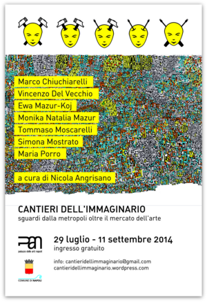 Nella convinzione che ciò che interpreta e costruisce dal basso l'immaginario collettivo debba essere valorizzato e discusso nell'agorà pubblica, Nicola Angrisano propone, dal 29 luglio all'11 settembre 2014 al PAN - Palazzo delle Arti di Napoli, uno spaccato della produzione di sette pittori/trici che vivono e lavorano nell'area metropolitana di Napoli.