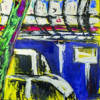 fino al 28 settembre 25 tele di diverse dimensioni e tecnica mista affascinandoci con un racconto diaristico che cessa d'essere monologo interiore e si manifesta come opera aperta, controvertibile, come un caleidoscopio, che quando ti ha appena stupito, lo fa ancora una volta, a dimostrazione che l'immaginario è inarrestabile, cangiante, imprevedibile.