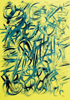 Sicuramente una gestualità del tutto mutuata dalla musica, dal gesto direttoriale, una gestualità che si trasforma in segno procedendo per strutture e ritmi di rapida percezione, collocando impulsi immediati e selettivi che, sulla tela, diventano rappresentazione, entro spazi in cui pone un sistema di distanze e di rapporti, di "suono-colore" e di "pause" e i titoli delle opere testimoniano ancora una volta la sua provenienza intellettuale. Opere in cui segno e materia hanno la capacità di descrivere visivamente la seduzione della musica.