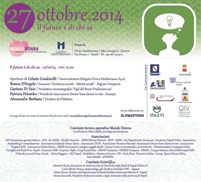 La Clinica Mediterranea il 27 ottobre, per il terzo anno consecutivo, avvia il percorso di sensibilizzazione MONDO DONNA che vuole far crescere la consapevolezza delle donne sui temi della modernità per renderle protagoniste di ideali e valori.