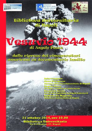 La manifestazione, che si inserisce tra le iniziative programmate dalla Biblioteca in occasione del semestre di presidenza italiana del Consiglio dell'Unione Europea, si articola intorno alla proiezione di un documentario inedito sull'ultima eruzione del Vesuvio montato dallo studioso Angelo Pesce.