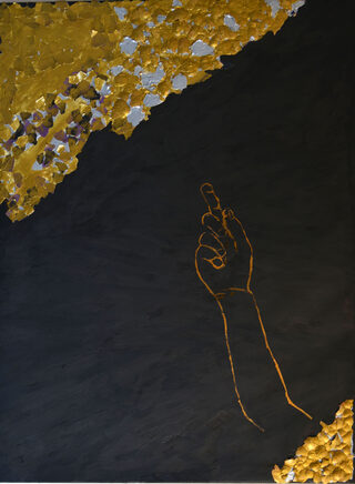 E lo ribadisce nelle opere di questa mostra inducendoci a guardare a quel Cesare Augusto che morì dalle nostre parti (a Nola) giusto duemila anni fa dopo quaranta anni di regno segnati da leggi che hanno superato i secoli. Nelle tele e nelle tavole di Schiano la mano destra dell'imperatore s'alza ieratica a indicare oro e argento simboli del potere ma sta su un fondo nero che vuol dire vuoto assoluto; il suo volto angelicato spesso emerge dalla nera terra lavica scrigno delle nostre memorie.
