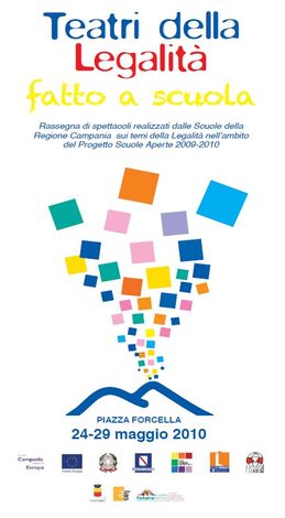Anche quest'anno Scuole Aperte propone la rassegna "Il Teatro della Legalità fatto a Scuola", che vede come protagoniste le Scuole dell'intera Regione e il loro generoso impegno civile. La rassegna, alla sua terza edizione, accoglie spettacoli realizzati per il progetto Scuole Aperte 2009-10 intorno ai temi della Legalità: il razzismo, il lavoro minorile, la lotta alla criminalità, la democrazia, la giustizia, la libertà e, in generale, qualsiasi argomento si riferisca ai temi della civile convivenza e del rispetto di sè e dell'altro. Sono stati selezionati 20 spettacoli o frammenti di spettacoli, della durata massima di 40 minuti, che sono presentati dal 24 al 29 maggio 2010 nei nuovi spazi multifunzionali di Piazza Forcella.