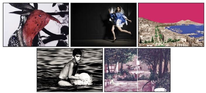 Non possono, quindi, non dirsi unione e pieno contributo artistico: gli abiti di Azzurra Parolisi con i disegni di Christophe Mourey e la fotografia di Michele Maresca che prendono vita, cuciti tra loro, in anima e corpo; la ripresa della realtà e la sua lettura attraverso un attimo perfetto, senza ritocco, al naturale, ma che sia immortalato nel dettaglio di Enza Martinisi; le linee silenziose e gli spazi bianchi espressione della contemporaneità nelle opere di Christophe Mourey; il colore senza tempo, che pospone l'attualità all'estasi del ricordo, qualcosa di conosciuto e di vissuto ma senza esserci mai stati, con le opere di fotografia e grafica di Giuliano Piccolo; l'eleganza e lo stile, in riflessi che si nascondono, nell'attesa che tutto riprenda vita, come il battito di un cuore che si ferma un istante e riprende il suo scorrere successivo nelle foto di Michele Maresca; ogni pennellata, ogni colore scelto sono un'azione e un'emozione vissuta, che ci riportano a tasselli, a passi di un cammino, in girotondi, che nell'insieme o guardando con un'altra prospettiva raccontano altre emozioni ed azioni, costruendo una storia nuova e ripetuta, ma "nostra" con Lucia Schettino. Questo è AZIMVT, è un'esperienza in cui siamo attivi o passivi spettatori ma anche uno dei due punti che creano ombre protese verso l'orizzonte, unite come gure di anime che plasmano un universo dove tutti possono affacciarsi, divenendone protagonisti attivi e ampliando lo spazio, dove tutto rinasce ipostatica d'arte.