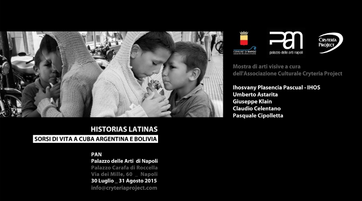 La mostra di arti visive, curata dall'Associazione Culturale Cryteria Project, raggruppa le opere di cinque artisti che negli anni hanno mostrato interesse per la cultura dei paesi latini, di cui anche Napoli è espressione viva. Verranno esposti gli scatti del fotografo emergente nato a Matanzas (Cuba), Ihosvany Plasencia Pascual, che ha già partecipato alla mostra "Sensi&Azioni. Da Cuba al Senegal", allestita a febbraio dello scorso anno nel Castel Nuovo di Napoli. In quell'occasione ha diviso la prestigiosa Sala Carlo V con Umberto Astarita che prenderà parte all'esposizione del Pan con le fotografie realizzate nell'ultimo viaggio fatto tra Argentina e Bolivia. Viaggio intrapreso con l'amico e fotografo, nonché filmaker, Claudio Celentano che in questa sede proietterà il documentario "Quien es el ultimo?", dedicato a Ivan Farinas. Astarita e Celentano da anni sono impegnati in attività umanitarie principalmente rivolte all'Africa, con l'Associazione Onlus Energia per i Diritti Umani, di cui sono parte attiva e con lo stesso spirito di solidarietà hanno deciso di partecipare a quest'iniziativa. Altro artista che metterà in mostra le sue opere è Giuseppe Klain, ideatore del fortunato progetto fotografico Havanapolis, presentato a maggio all'Ambasciata d'Italia a Cuba; progetto fotografico che mette in evidenza i punti di contatto tra la città cubana e Napoli, sia dal punto di vista urbanistico che culturale. Pasquale Cipolletta invece esporrà un dipinto inedito intitolato "Un Sorso di Vita", nel quale dà una sua personale interpretazione del concetto di vita, fatta di attimi come quelli che ricorrono nelle opere degli altri artisti presenti. La mostra Historias Latinas, che sarà inaugurata giovedì 30 luglio alle ore 18.30, è un percorso per immagini a metà tra il reportage e il racconto emozionale di luoghi lontani, quei luoghi che prendono forma nei volti e nei gesti delle persone che sono ritratte nelle opere in esposizione. Siamo di fronte a "Sorsi di Vita", intesi come momenti, frames dello scorrere lento del tempo in alcuni paesi dell'America Latina, Cuba, Argentina e Bolivia, passando per la nostra bella Napoli, che si riflette come in uno specchio mostrando similitudini e differenze. |