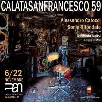 Napoli, 28 ottobre 2015 - Venerdì 6 novembre alle ore 18 si terrà il vernissage di apertura della mostra CALATASANFRANCESCO 59. Alessandro Catocci e Sonia Ritondale fotografano Riccardo Dalisi e il suo studio, in programma al Pan fino al 22 novembre. Calata San Francesco 59 è l'indirizzo dello studio dell'architetto Riccardo Dalisi, a Napoli. Da una visita presso il suo studio nasce l'idea di portare ad un pubblico più ampio le immagini di questo atelier molto particolare, testimonianza di una vita dedicata all'insegnamento, al design, alla scrittura, all'arte, con tutte le sue stratificazioni temporali.