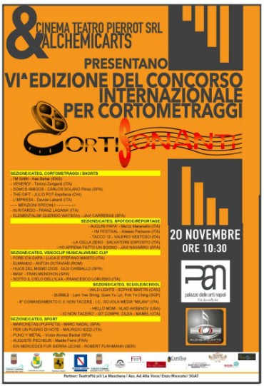 "Cortisonanti", nato nel 2010 da un'idea di Mauro Manganiello, all'epoca Presidente dell'Associazione Culturale AlchemicartS, e Nicola Castaldo, direttore dell'Auditorium Caivano Arte - Teatro Augusteo, è un festival internazionale di cortometraggi che nasce con l'obiettivo di dare visibilità agli autori in piena libertà di espressione, senza vincolo alcuno di ideologia o altro tipo di "filtro", accogliendo peraltro sia lavori inediti che editi. Nella prima edizione venivano accettati solo cortometraggi e videoclip, dal 2011 si passò a quattro categorie distinte di filmati. Dopo l'edizione del 2012, che vide la premiazione svolgersi nella prestigiosa cornice di Anacapri, dal 2013 la cerimonia di premiazione, che si tiene dopo la proiezione di tutti i filmati scelti dalla Commissione a seguito di un'attenta cernita, si svolge presso il PAN - Palazzo delle Arti di Napoli.