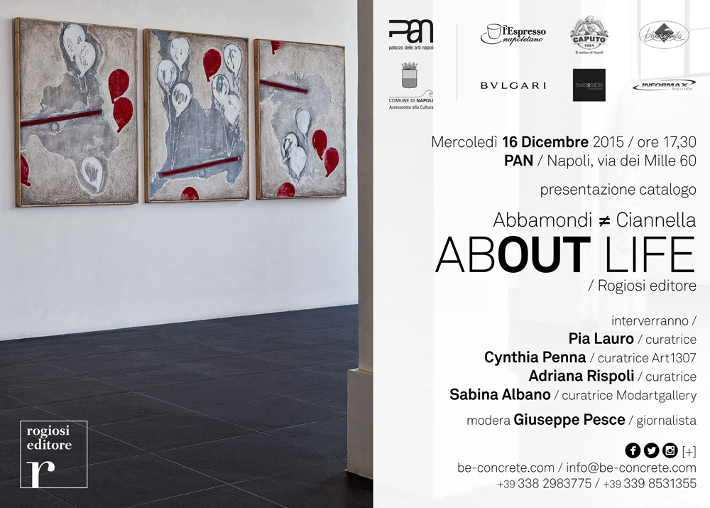 Avrà luogo a Napoli, mercoledì 16 dicembre 2015, ore 17:30, nella sala Loft del PAN, Palazzo delle Arti Napoli, via dei mille n°60 Napoli, la presentazione del catalogo di arte contemporanea About life edito