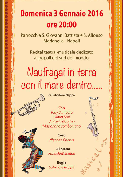 Il nuovo recital teatral-musicale di Salvatore Nappa e Padre Antonio Guarino ispirato alla storia, alla sofferenza dei popoli del Sud del mondo propone un'efficace racconto tra musica, poesia, cinema e letteratura.