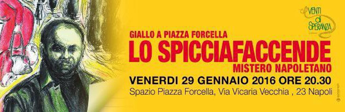 Venerdi 29 gennaio 2016, alle ore 20,30, l'Associazione Venti di Speranza, in collaborazione con l'Associazione Annalisa Durante, presentano "Lo spiccia faccende. Giallo a Piazza Forcella. Mistero Napoletano" libro scritto da Tonino Scala. E' prevista la presenza dell'autore, degli artisti Carlo Faiello, Patrizia Spinosi, Sasà Mendoza e del trio "La Maschera". La lettura è a cura di Rosario D'Angelo. Conduce la serata Emilio Vittozzi.