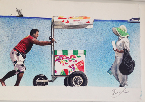 I soggetti raccontati nei suoi dipinti sono uomini e donne ritratti sulle spiagge delle coste italiane intenti a vendere oggetti di ogni genere. Il cantautore ha dipinto queste persone con un'eleganza ed una dignità superiore a quella dei bagnanti. Come a sottolineare l'umiltà di chi, per sfuggire a guerra e miseria, ha dovuto abbandonare