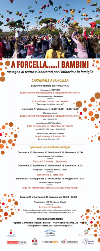 "A Forcella...i bambini" è la rassegna di laboratori e spettacoli destinati al mondo dell'infanzia in programmazione nello "Spazio Comunale Piazza Forcella"dal 6 febbraio al 29 maggio 2016.