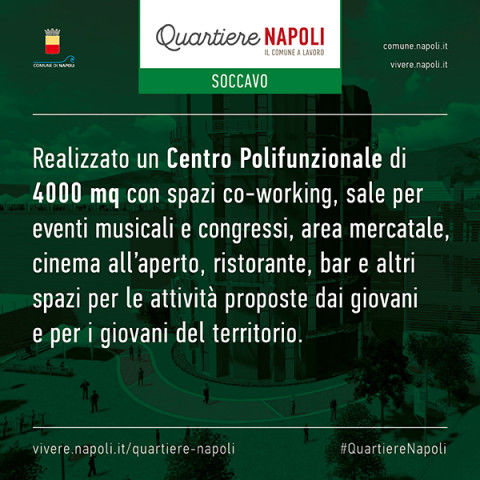 - Le aree pubbliche e private ad uso pubblico sono state prese in carico dal Comune che provvederà a svolgere manutenzione delle strade e della rete idrica e fognaria e servizio di rimozione dei rifiuti, attraverso le proprie società partecipate (NapoliServizi, ASIA, ABC,) con l'obiettivo di restituire il decoro ad un'area trascurata.