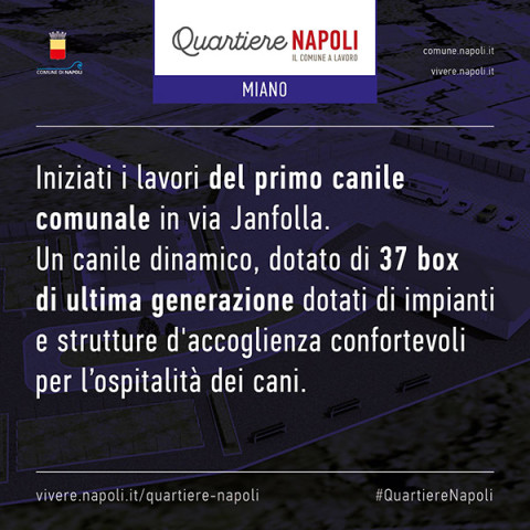 - Iniziati i lavori del primo canile comunale in via Janfolla. Un canile dinamico, dotato di 37 box di ultima generazione dotati di impianti e strutture d'accoglienza confortevoli per l'ospitalità dei cani.