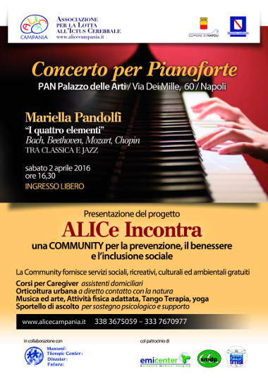 Il 2 aprile alle ore 16,30 presso il PAN | Palazzo delle Arti Napolil'Associazione per la Lotta all'Ictus Cerebrale - ALICe onlus Campania- presenterà il Progetto "ALICe Incontra".