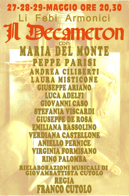 Franco Cutolo ha scelto cinque racconti emblematici del DECAMERON ed ha cercato di individuare una serie di dialetti che potessero evocare una sorta di panoramica sull'Italia.