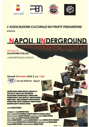 Giovedì 13 Ottobre 2016 presso il PAN, Palazzo delle Arti di Napoli, alle ore 17:00, sarà proiettato in anteprima nazionale Napoli Underground, lungometraggio indipendente a episodi scritto e diretto da Salvatore Polizzi.