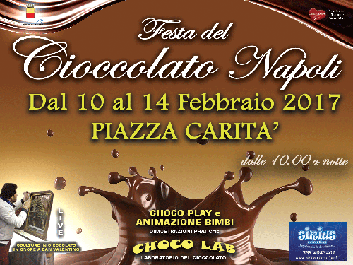 Dal 10 al 14 febbraio 2017 il cuore pulsante di Napoli si immergerà nel Cioccolato. Per quattro giorni la famosa kermesse sul buon cioccolato artigianale che sta sconvolgendo di gusto il Bel Paese sarà presente in Piazza Carità con degustazioni, laboratori, arte, shopping, intrattenimento e sana alimentazione per un'edizione tutta dedicata agli innamorati in onore della festa di San Valentino.