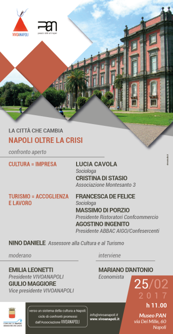 Al PAN sabato 25 febbraio, ore 11.00, si discuterà, nell'ambito del ciclo "La Città che cambia", di "Napoli oltre la crisi. La cultura come