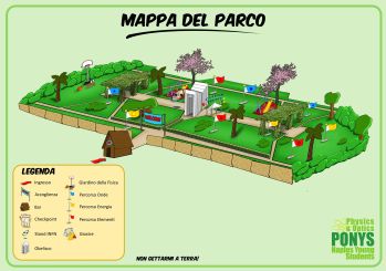 Completati i percorsi, verrà timbrato il Passaporto Scientifico e si riceverà un gadget. L'avventura continuerà nel Giardino della Fisica, un'area interattiva dove scoprirai il legame tra scienza e sport. La Sezione di Napoli dell'Istituto Nazionale di Fisica Nucleare sarà presente con uno stand e spiegherà cosa sono i raggi cosmici e come si utilizzano i muoni che provengono dallo spazio per fare radiografie dei vulcani e del sottosuolo.