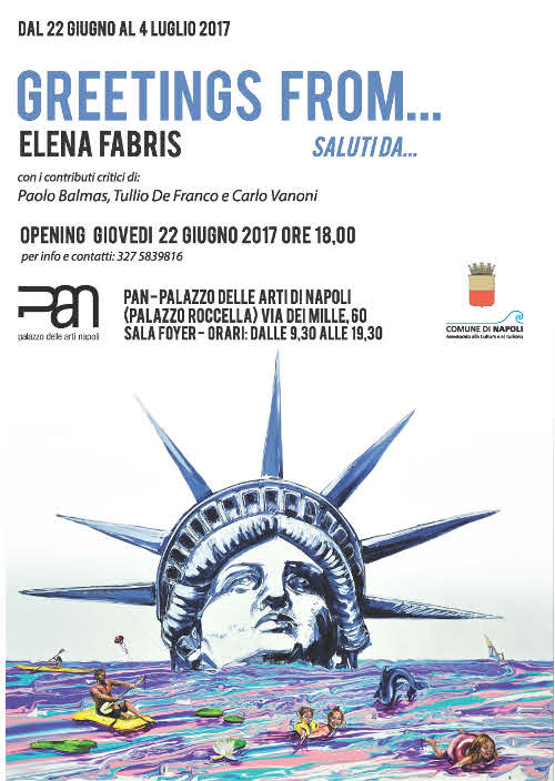 Far riflettere, utilizzando la chiave dell'ironia, sull'importanza della tutela dei beni artistici e ambientali. È questo il messaggio che l'artista Elena Fabris, sociologa, classe 1975, napoletana ma romana d'adozione, vuole trasmettere attraverso 25 opere e due istallazioni che saranno protagoniste dell'esposizione aperta al pubblico, dal 22 giugno al 4 luglio 2017, al PAN, Palazzo Arti Napoli, in collaborazione con l'Assessorato alla Cultura e Turismo del Comune di Napoli.