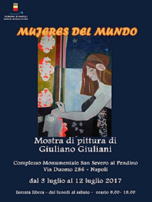Mujeres del mundo dell'Artista romano Giuliano Giuliani. In occasione della prima personale a Napoli dell'Artista, gli spazi del Complesso Monumentale ospiteranno 22 tele dell'Artista, la cui ricerca è costantemente volta alla rielaborazione di alcuni contenuti poetici del primo Novecento: ne risultano evocazioni raffinate e ricche di suggestione dove la personalità di Giuliano Giuliani è sempre ben riconoscibile.