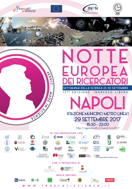 La sezione di Napoli dell'Istituto Nazionale di Fisica Nucleare, in collaborazione con il Dipartimento di Fisica "Ettore Pancini", gli istituti SPIN e ISASI del CNR e dell'Ufficio Territoriale Istat della Campania, incontreranno la città di Napoli in occasione della "Notte Europea dei Ricercatori 2017" presso la stazione ANM della linea 1 "Municipio", il 29 settembre 2017 dalle ore 16.30 alle ore 22.00.