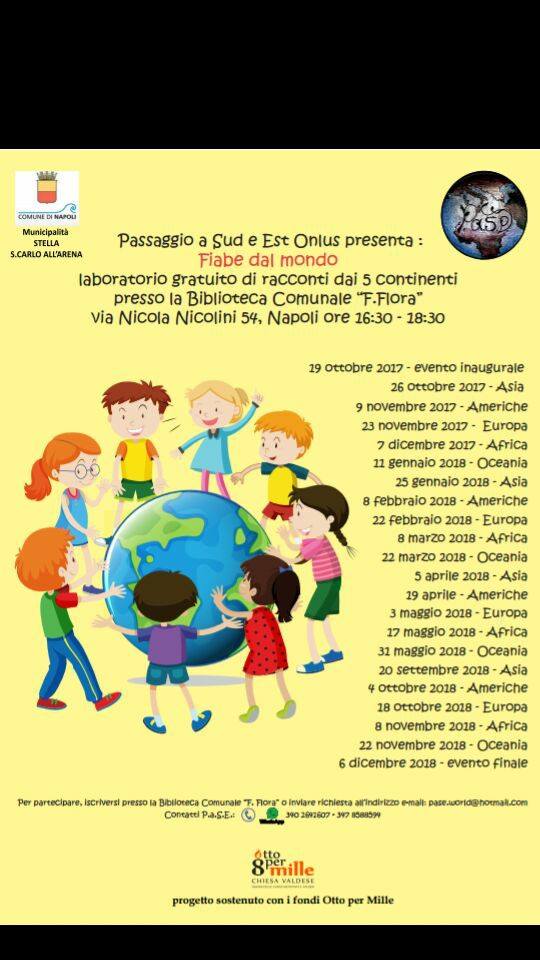 Fiabe dal mondo - ricomincia il percorso di lettura di fiabe, racconti,storie dal mondo realizzato dalla nostra associazione presso la Biblioteca Municipale F. Flora di Via Nicola Nicolini.