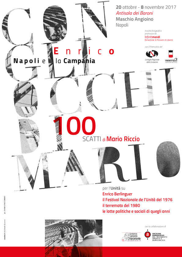 La mostra fotografica CON GLI OCCHI DI MARIO, dedicata a Mario Riccio, che negli anni '70 e '80 è stato fotografo e giornalista de l'Unità a Napoli, attingendo al suo archivio e in sua memoria ripercorre circa venti anni di vicende politiche, sociali e culturali della Città e della Regione. Nella mostra, promossa dalla rivista "Infiniti mondi" con la collaborazione dell'Assessorato alla Cultura e al Turismo del Comune di Napoli e del Consiglio Regionale della Campania, le fotografie di Mario Riccio diventano occasione per riflettere, con uno sguardo rivolto al futuro, sulla storia napoletana e campana degli anni '70 e '80, sulle lotte di quegli anni, sul terremoto del 1980 e soprattutto su Enrico Berlinguer nel suo rapporto con questa terra. Nella durata della mostra, l'Antisala dei Baroni del Maschio Angioino ospiterà incontri pubblici di riflessione e di confronto, sulla città, sulla sua storia, sui protagonisti di quegli anni, a partire dallo stesso Enrico Berlinguer, con gli attori e i protagonisti di oggi. "Abbiamo messo a disposizione per questa mostra- ha dichiarato l'Assessore alla Cultura Nino Daniele -le sale del Maschio Angioino, il monumento simbolo di Napoli, poiché sappiamo che l'eredità di Mario Riccio non è un patrimonio di una parte, ma un bene comune della Città. Ringrazio dunque Infiniti mondi per questa occasione di riflessione sulla nostra città e sulla sua storia e, soprattutto, sulla figura di Enrico Berlinguer, un protagonista che avvertiva in tutta la sua portata la crisi delle ideologie e l'urgenza pressante che essa non travolgesse grandi idealità e facesse smarrire la consapevolezza della necessità di idee regolative, in grado di orientare grandi masse umane in cerca di dignità ed opportunità". |
