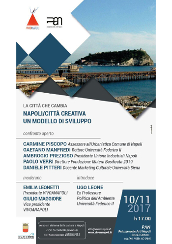 Il tema è centrale per una città che è riconosciuta a livello internazionale per la fantasia e la creatività dei suoi abitanti. Per questo e per interrogarsi sulle condizioni, le azioni e i percorsi che possono contraddistinguere la "città creativa", VIVOANAPOLI organizza, in collaborazione con l'Assessorato alla Cultura e al Turismo del Comune, un confronto dal titolo: Napoli/Città Creativa. Un modello di sviluppo.