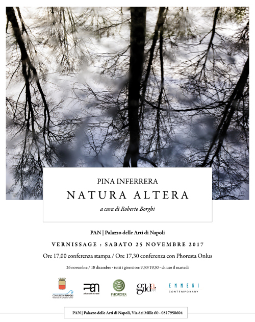 Pina Inferrera  da sempre si occupa nella propria ricerca di ambiente ed ecosistema, anche passando attraverso macro installazioni in open air, utilizzando materiali di riciclo industriale. In questa occasione, saranno esposte lavori fotografici di intensa liricità, dedicati agli alberi ed al foliage, una trentina di opere realizzate durante gli ultimi cinque anni nel corso di viaggi in Austria, nella regione della Stiria, e in Francia, sulle coste della Normandia e lungo i fiumi della Borgogna. Immagini in cui la vegetazione è colta in rapporto all'acqua e al suo potenziale di rispecchiamento, scatti in cui la natura riverberandosi conosce una sorta di alterazione dei suoi lineamenti, una trasformazione in qualcosa di letteralmente altro che ha tratti spiccatamente pittorici e un'intonazione velatamente metafisica. In queste opere insomma si manifesta - secondo Roberto Borghi, curatore della mostra - una visione «totalmente altra» dal canone romantico della rappresentazione della natura che la vorrebbe «riflesso dell'interiorità dell'artista»: qui invece assistiamo a «una natura che si specchia in se stessa e che non si ritrova, una natura che specchiandosi si tramuta, si dissolve, si perde», ma grazie a tale perdita acquisisce ieraticità e vitalità inconsuete e preziose.