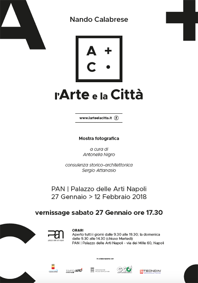 Il vernissage della mostra avrà luogo il 27 gennaio 2018 alle ore 17,30 al Pan, Palazzo delle Arti Napoli e durante la serata sarà proiettato anche il video “L’arte e la città” realizzato da Nando Calabrese con la consulenza di Sergio Attanasio per le immagini e del maestro Stefano Sovrani per la colonna sonora.