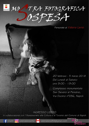 In collaborazione con l'Assessorato alla Cultura e al Turismo del Comune di Napoli, nel suggestivo Complesso Monumentale di San Severo al Pendino, in via Duomo 286, inizia martedì 20 febbraio la mostra fotografica dell’artista Valeria Laino, che durerà fino al 5 marzo. Il titolo di questa nuova mostra, itinerante, già a Milano e Genova, lascia spazio all’immaginazione ed è un invito ad andare oltre... Ma oltre cosa?