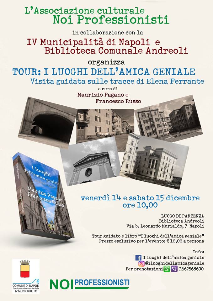 Avranno inizio venerdì 14 e sabato 15 dicembre con partenza alle ore 10,00 dalla Biblioteca Comunale Andreoli in via Leonardo Murialdo n. 7, le prime due visite guidate al Rione Luzzatti sui luoghi dell'Amica Geniale, promosse dall'associazione culturale Noi Professionisti con il patrocinio morale della Municipalità 4.