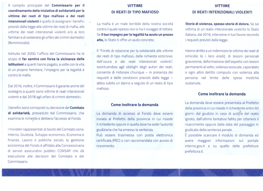Commissario per il coordinamento delle iniziative di solidarietà per le vittime dei reati di tipo mafioso e dei reati intenzionali.