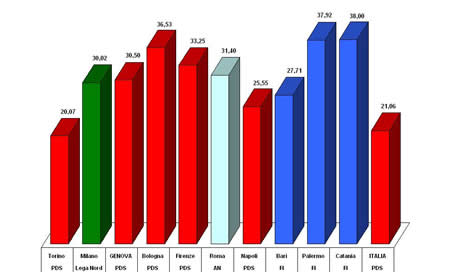 La rivincita del centro-sinistra. Il centro-sinistra conquista la maggioranza assoluta dei seggi alla Camera. Il centro-destra è fortemente penalizzato dalla rottura con la Lega. Il risultato napoletano, come nel passato, accentua le tendenze nazionali: il successo dell'Ulivo è ancora più evidente, lo schieramento di centro-sinistra alla Camera conquista sette dei nove collegi cittadini.