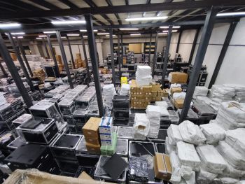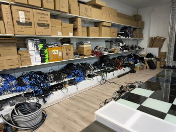 La Polizia Locale ha rinvenuto anche migliaia di prodotti elettronici professionali per l’audio e l’illuminazione, recanti marchi presumibilmente contraffatti di note case produttrici internazionali del settore, tra cui: JBL, Shure, Sennheiser, Danon DJ, Lab Gruppen, Avolites, MA, Clay Paky, Portman, Music & Light e d&b audiotechnik.